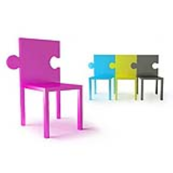 Think 'interlocking chairs' and you generally think church halls andschool assemblies, and not so much high design as dusty wooden orcanvas seats. So I was impressed to find the whole concept made a lotmore fun by the simple expedient of adding a little bright colour, andmaking the join just like a jigsaw one. Even better, unlike a realjigsaw, it doesn't matter if you lose a piece or put them in the wrongorder.